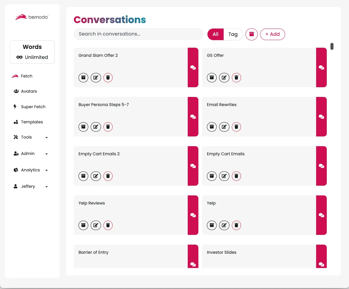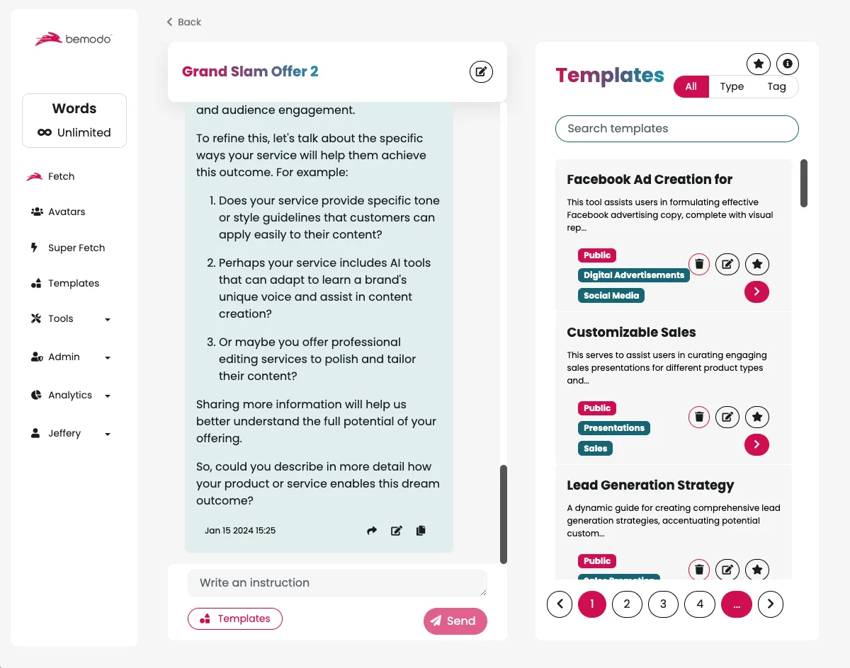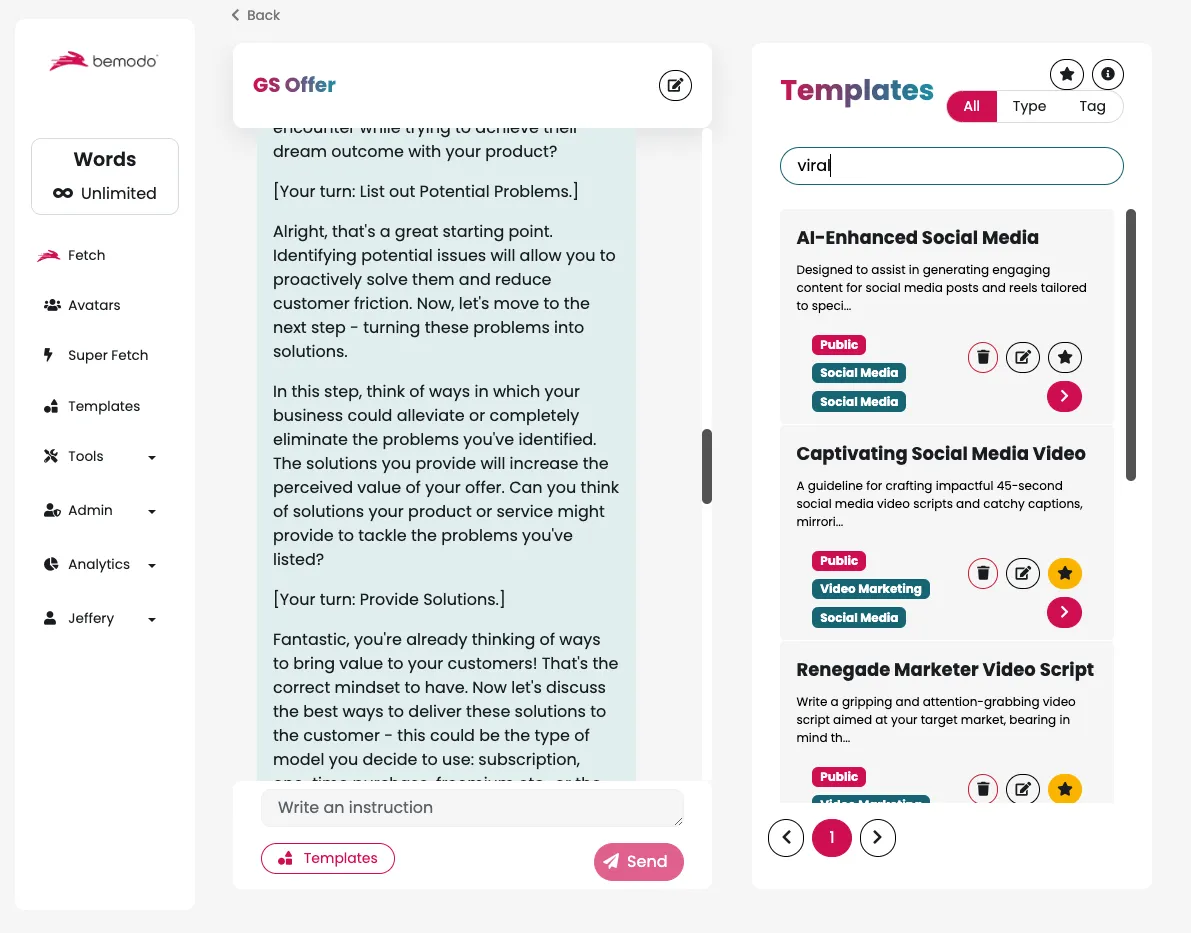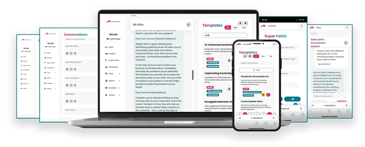 Bemodo is so intelligent that it not only understands, learns & improves your Avatar, your niche, your messaging & copy…BUT with my ultra-advanced SuperFetch™ technology, it now learns your prompts too…